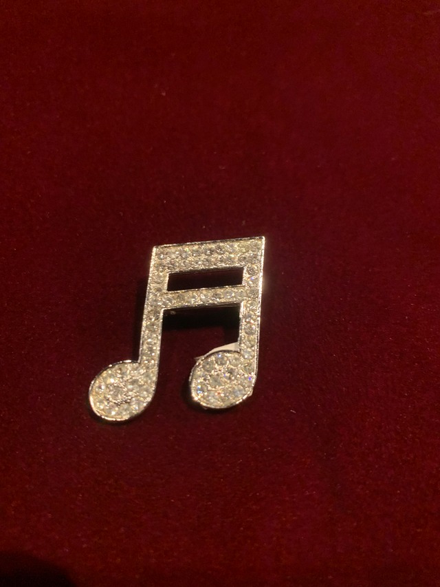 音符形 シルバー×ビジュー 小ぶりなブローチ 小ぶりブローチの重ね付けもおすすめです! 縦 3cm 横 2〜2.5cm
