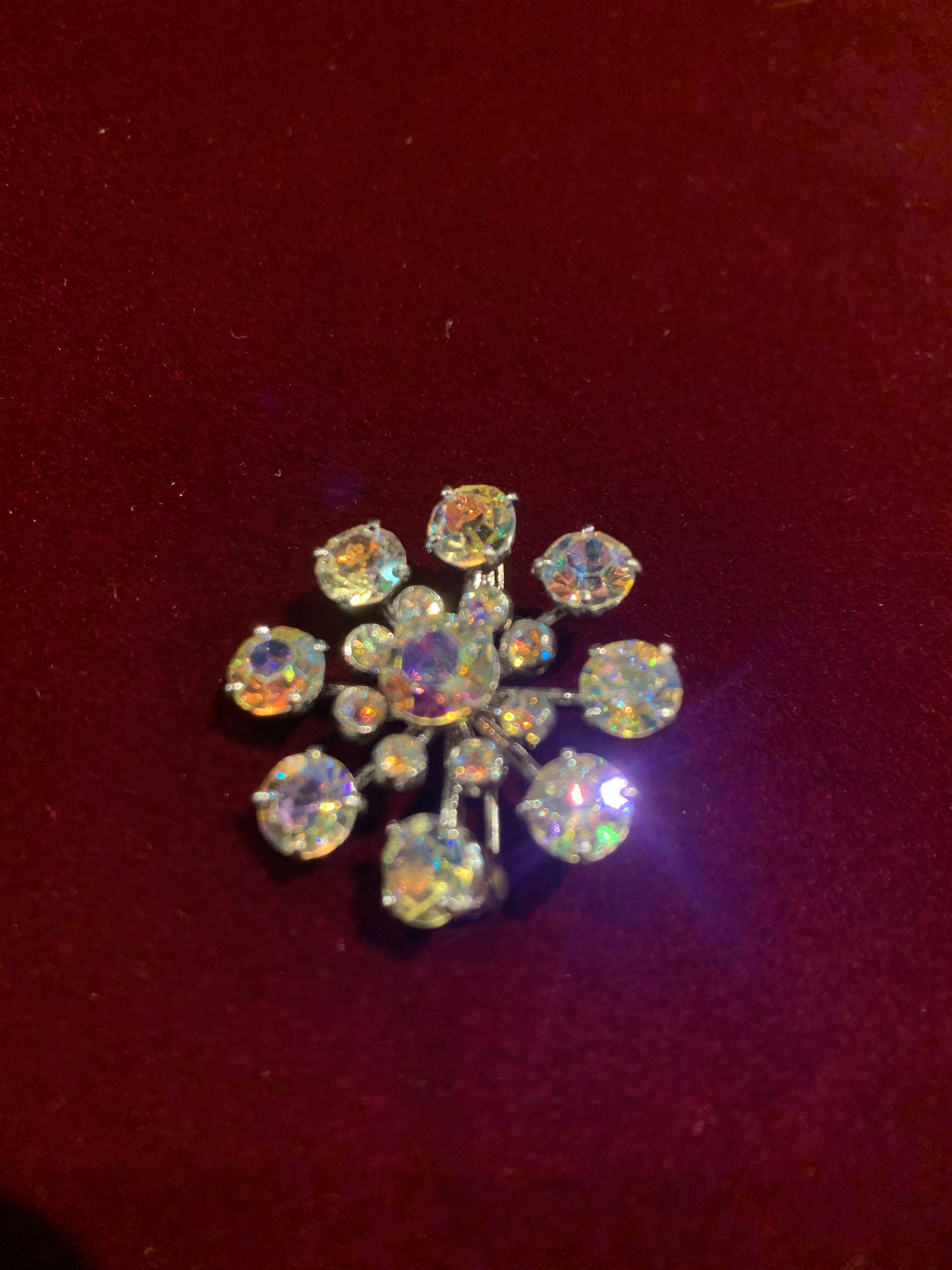 ビジューがシルバーでは無く、オーロラがかっているので珍しい輝きを放っています