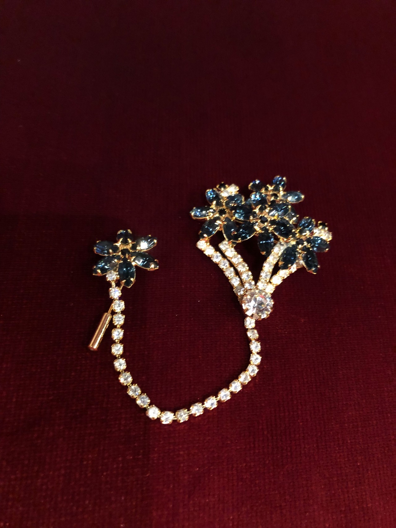 ブーケと一輪のお花がビジューチェーンで繋がっていて両端に留め具があるデザインです